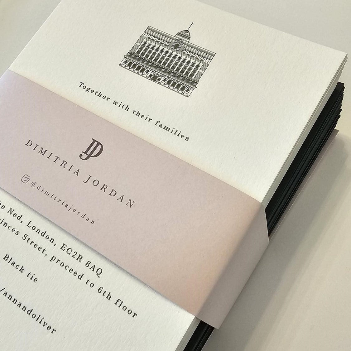 Add the personal touch to your wedding stationery with bespoke monograms, guest name printing, hand-drawn venue illustrations, and refined finishes such as wax seals, ribbons and hot foiling.